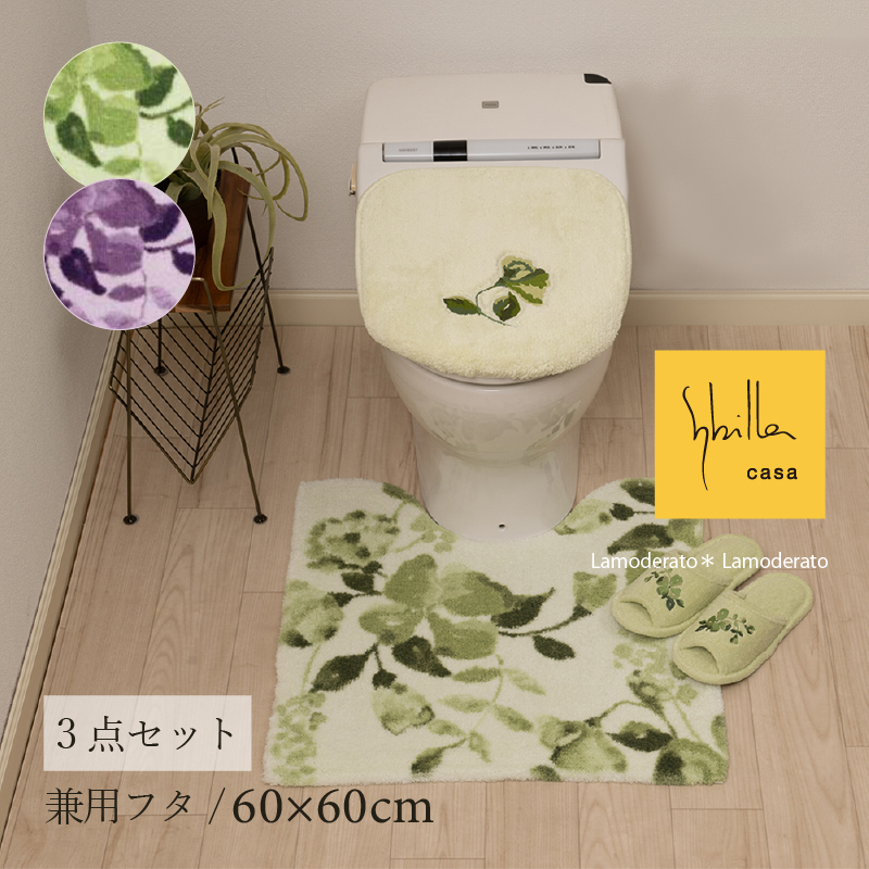 ●商品名:トイレマットセット 3点 約60×60cm トイレマット+兼用フタカバー+スリッパ シビラ コンパルティール センコー
