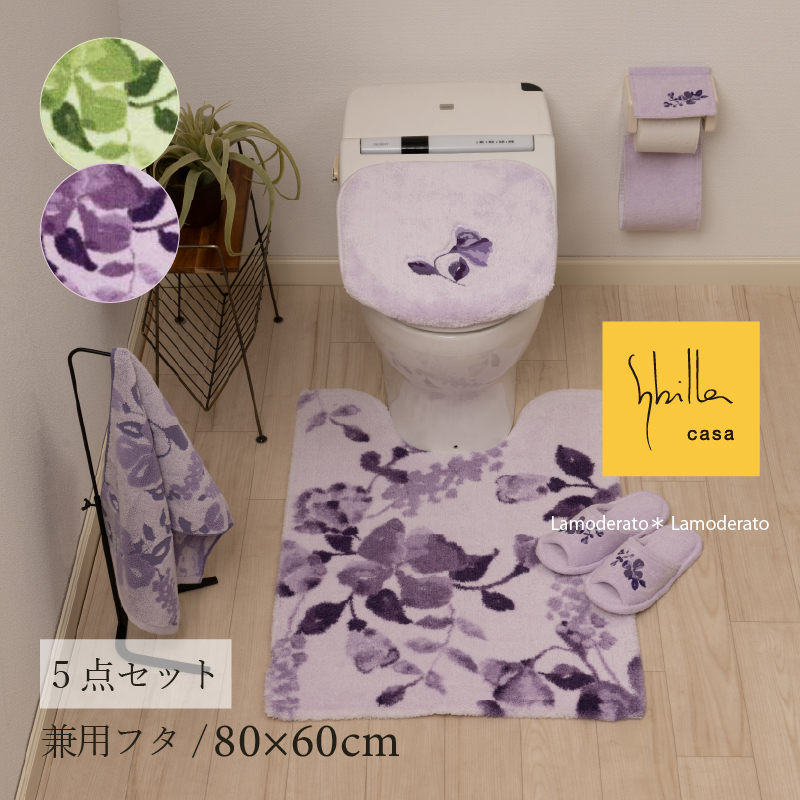 トイレマットセット 5点 約80×60cm ロングトイレマット+兼用フタカバー+スリッパ+ペーパーホルダーカバーN+ハンドタオル シビラ コンパルティール センコー
