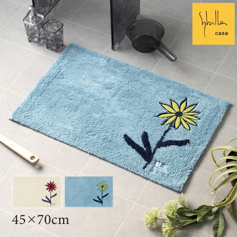 花の輪郭を濃色で描くことでメリハリが生まれ、モダンで印象的なバスマットに仕上がっています。