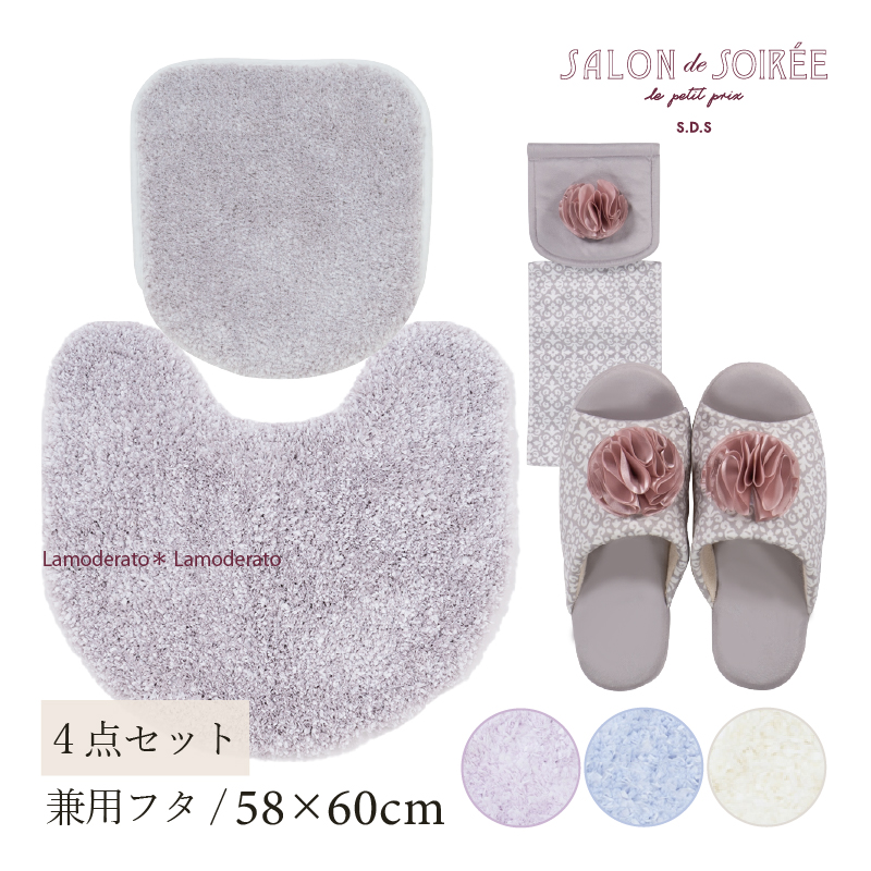トイレマットセット 4点 トイレマット+兼用フタカバー+スリッパ+ペーパーホルダーカバー SDS シュクルメランジェ センコー