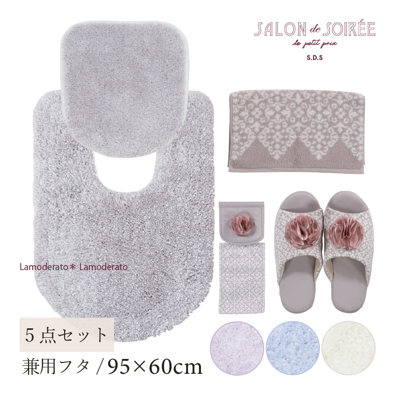 トイレマットセット 5点 耳長トイレマット+兼用フタカバー+スリッパ+ペーパーホルダーカバー+ハンドタオル SDS シュクルメランジェ センコー