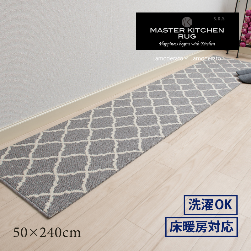 キッチンマット 240cm おしゃれ 洗える 床暖 台所マット 滑り止め ロングマット SDS CARDIFF 約50×240cm グレー センコー