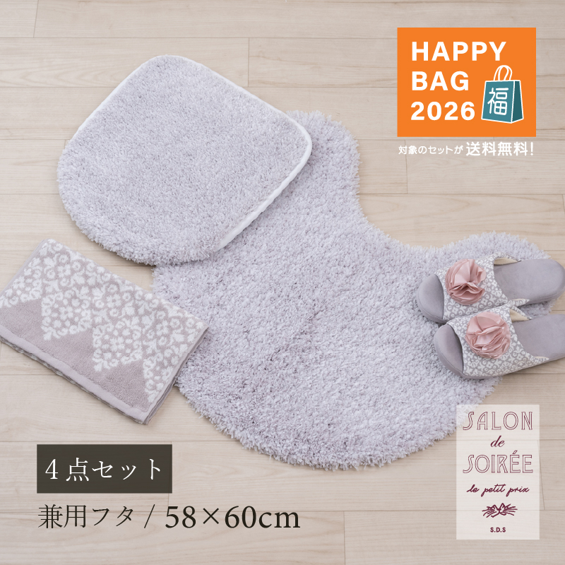 ●商品名:福袋2026 トイレマットセット 4点 約58×60cm トイレマット+兼用フタカバー+スリッパ+タオル SDS シュクルメランジェ グレー センコー