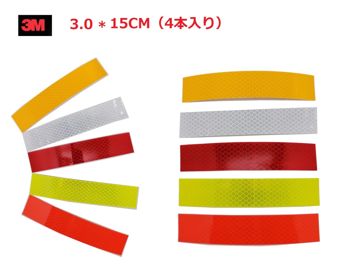 3M ダイヤモンド級 安全反射テープ 3.0*15CM 4本セット 高反射力 多用途利用 自動車 自転車 ベビーカーなどに(5色選択)スリーエム リフレクター