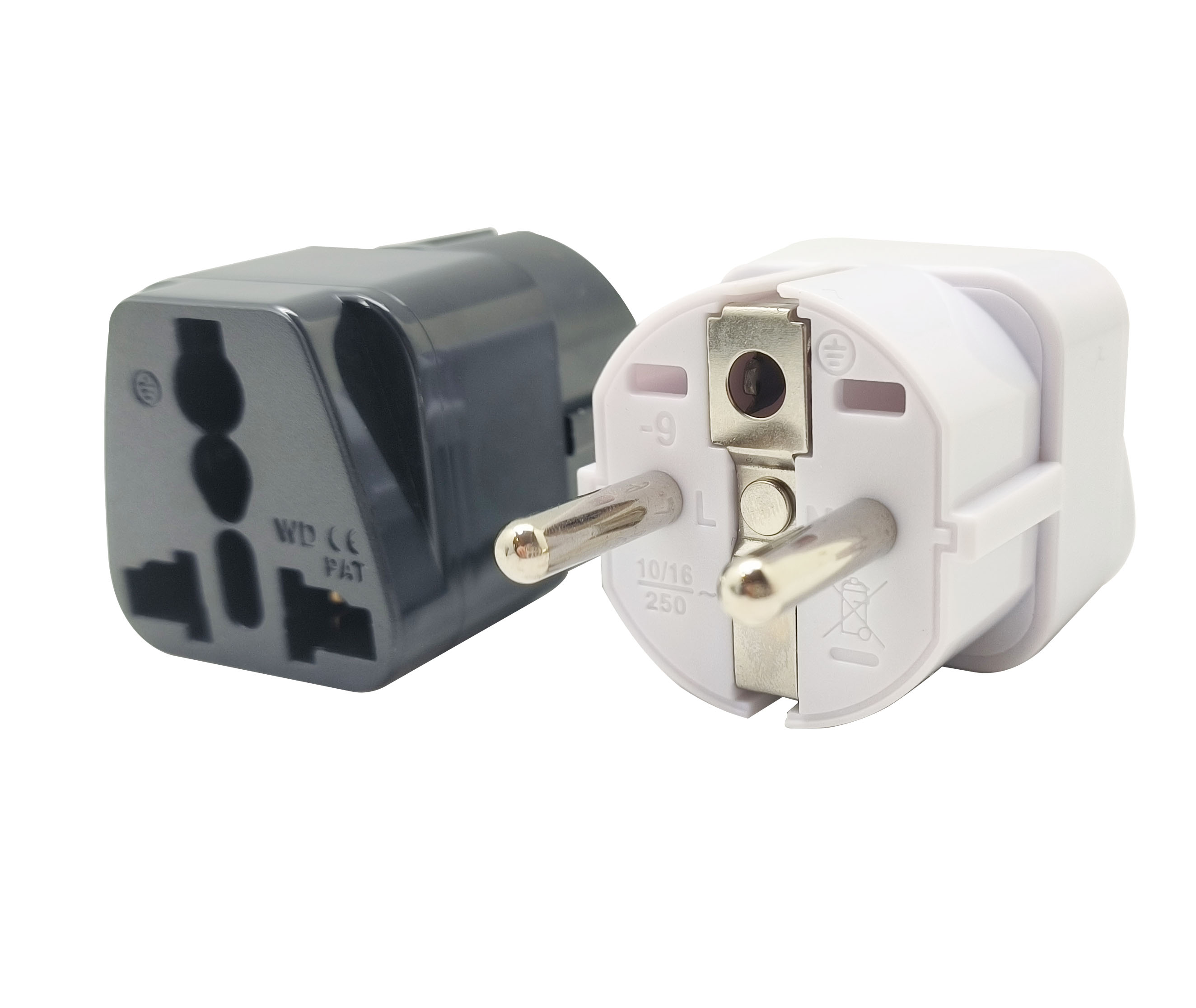 海外用変換アダプター 形状種類C.SEタイプ 最大250V 16A対応 便利な小型デザイン 各国の電子機器を指定国で使用 黒と白の2種類選択 旅行用電源変換プラグ
