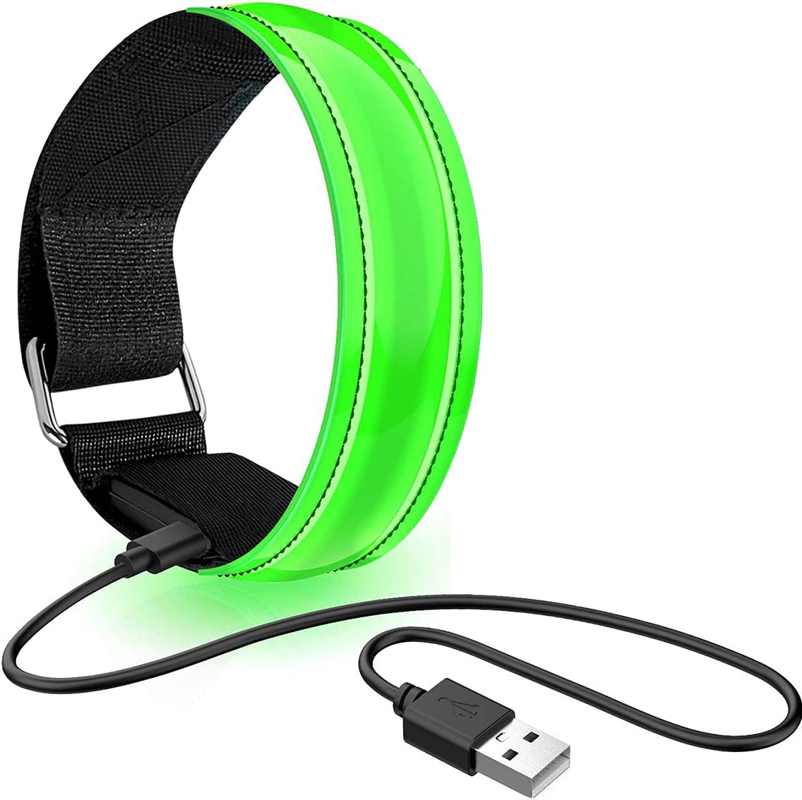 【夜間安全対策】高輝度LEDを採用、遠くからでも目立つ。夜間のランニング、ジョギング、ウォーキング、通学、犬の散歩、バイト帰り、自転車走行、交通整備、散歩・歩行など時に、車だけでなく、無点灯の自転車や歩行者に対してもアピール、不慮の衝突を回避出来る。【3大モード&大活躍中】素早い点滅→点滅→長点灯、三つの点灯モードがあります!雨の日、自転車走行などの場合には、点滅モードでまわりの人と車に注意を促す効果があります。夜ラン、夜釣り、散歩などの場合には、点灯モードで自分の位置をアピールできます。また、様々なシーンでご利用いただけます。【サイズ調整可能&着心地いい】商品全長は39cmですが(幅2.5cm)、調節可能なので、子供と大人を問わず、男性の方から女性の方の腕まで幅広くフィットしてくれます。アームバンドやリストバンド、裾バンドなどとして良くご利用いただいております。ライト部分は柔らかい素材を採用しており、着用心地がとてもよいです。【経済的なUSB充電式&反射材採用】充電時間は40分ほどで、充電した後のご使用時間はおよそ3時間まで。何度も繰り返しご利用いただける経済的なLEDバンドです。また、LEDの部分はもともと反射材なので、点灯しない時にも安心できます。【防水機能&最高のギフト】日常生活の雨水などによる水滴の付着や飛沫程度なら、本体に悪影響なく耐えることができます。ご家族の方やご友人へのプレゼントにも最適です。ご利用場所は広いです。自転車やランニング、防災防犯、散歩、SOS、キャンプ、テント泊、夜釣り、登山、スポーツ、応援、停電、非常灯など、様々な場合にご利用いただけます。