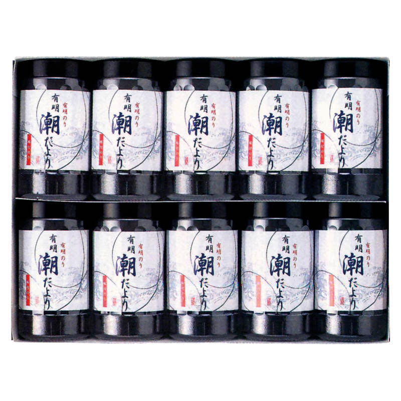 有明海産の海苔に一枚一枚丁寧に味付けしました。少しずつ開封できる使い勝手の良い卓上容器でギフトなどにおすすめの商品です。