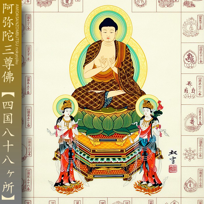 四国八十八ヶ所巡礼 納経軸 朱印軸 阿弥陀三尊佛 お遍路用品/巡礼用品