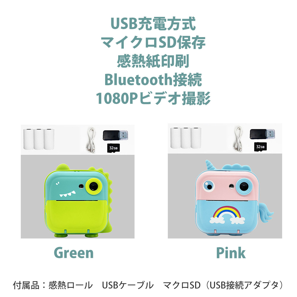 ●セット内容:カメラ本体、プリント感熱紙×2、スッテカー、ネックストラップ、32GB Micro SDカード、USB充電ケーブル、取扱説明書(英語)