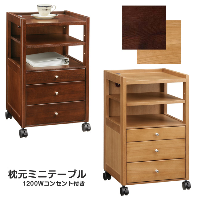 サイドテーブル 天然木チェスト コンセント付きナイトテーブル 完成品(幅38cm 高さ63cm)