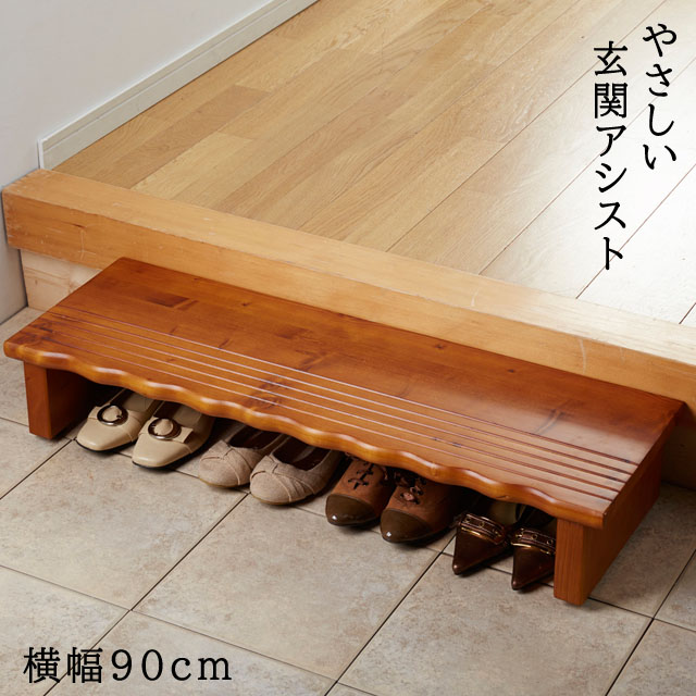 玄関踏み台 段差解消ステップ 補助サポート台 高さ微調整 幅90cm 天然木玄関台90