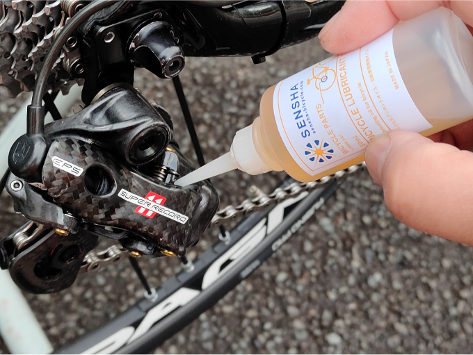 』で自転車全体を丸洗いした際は、必要に応じて前後の変速機やブレーキの可動部分にも注油をしますが、その時も注油量はごく少量です。