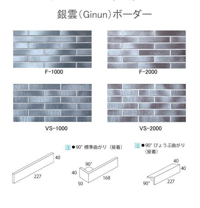 銀雲 227×40ボーダー いぶし調タイル フラット面 スクラッチ面 内外装壁タイル
