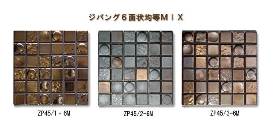ジパング45角特殊面状ミックスシート張り ゴールド・シルバー・ブロンズ メタリック調内装インテリアタイル キッチンバック