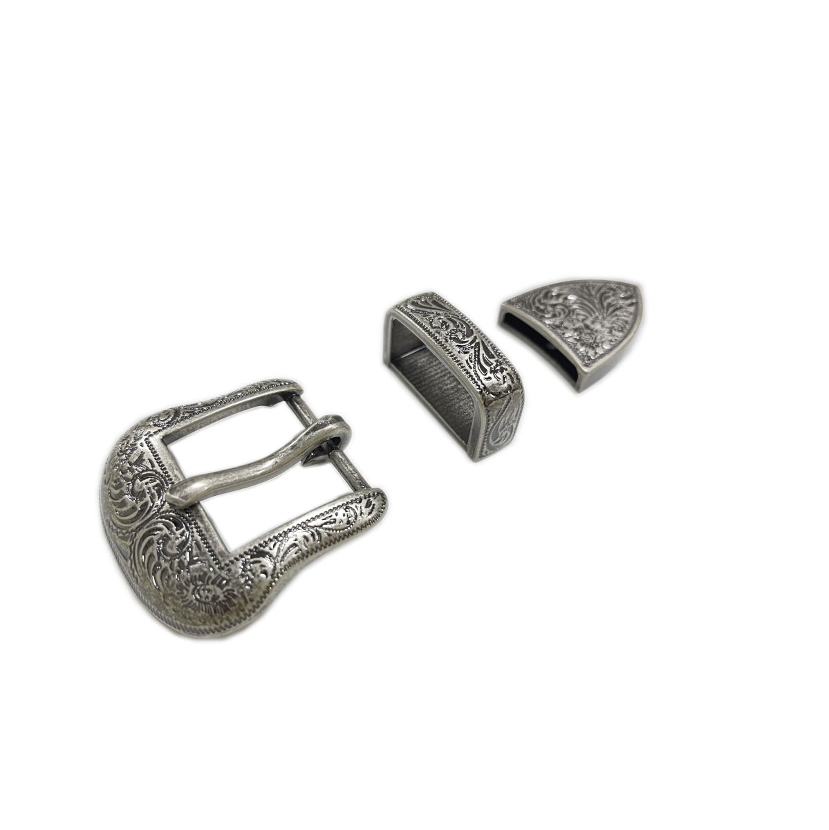 SENWA 唐草レンジャーバックル ベルト用 メンズ 巾25mm 3点セット シルバー