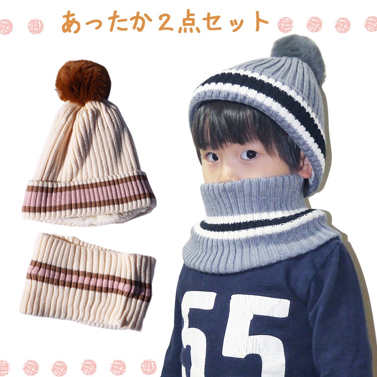 キッズ ニット帽 ネックウォーマー 2点セット マフラー ふわふわ 子供 男の子 女の子 暖かい シンプル 秋冬 防寒対策 かわいい 人気 おしゃれ