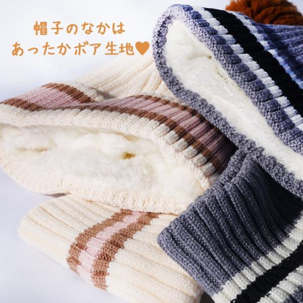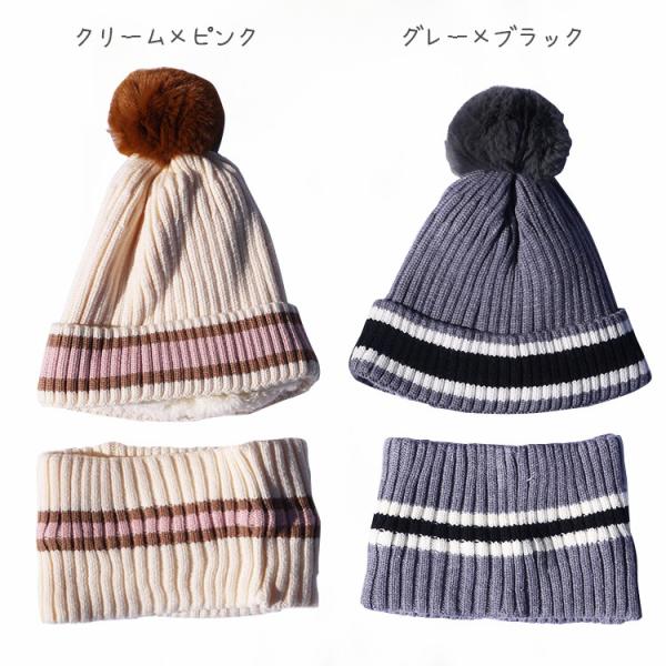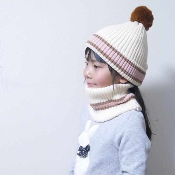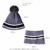 横ラインが入ったかわいいニット帽&同柄ネックウォーマーのセットです。