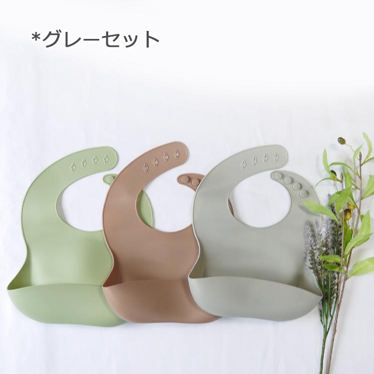 シリコンスタイ 3枚セット 男の子 女の子 無地 防水 お食事エプロン くすみカラー ベビービブ シリコンビブ 赤ちゃん ベビースタイ