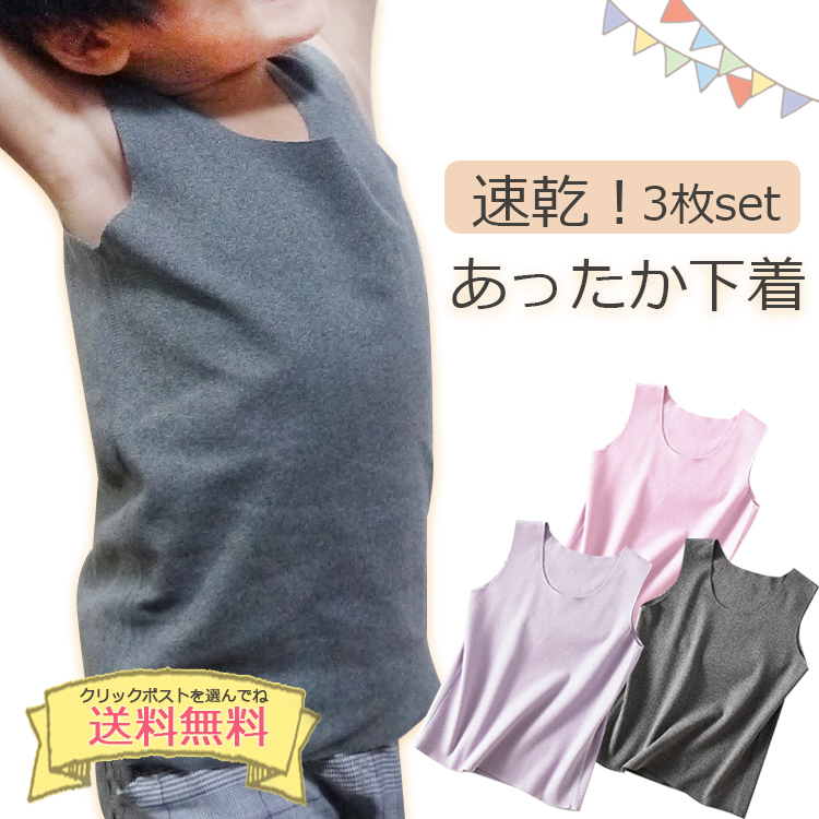 キッズ 冬用ジュニアインナー 肌着 下着 あったか 3枚組 保温シャツ クリックポスト送料無料