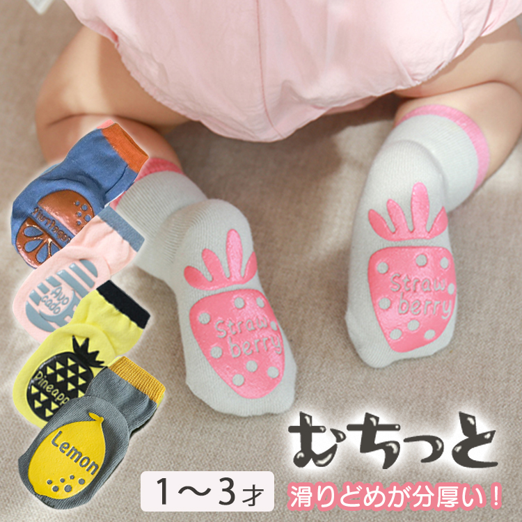 ベビー キッズ 転倒防止 靴下 滑り止め靴下 滑りにくいソックス 滑り止め付き 短め フルーツ柄 保育園や幼稚園に