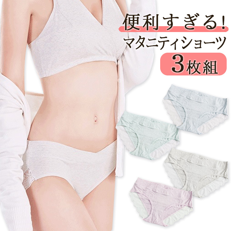 締め付けない マタニティショーツセット 3枚組 ロー Vクロス パンツ マタニティ ショーツ ローライズ 大きいサイズ インナー シンプル コットン 下着 産前 産後