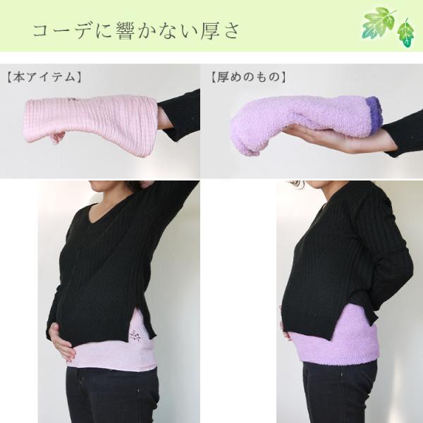 ロング丈で広い範囲を温められ、妊娠期の腰痛対策にも。