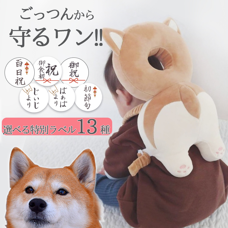当店オリジナルお祝いラベル無料 柴犬 ベビーヘッドガード クッション ごっつん防止 リュック 柴犬 いぬ かわいい 初節句のプレゼントに 贈り物 洗える