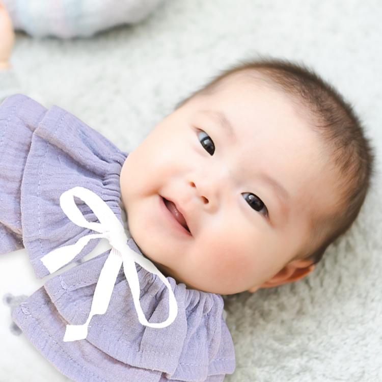 シンプルな無地デザインにフリルが二重になっており、男の子ベビー、女の子ベビー、