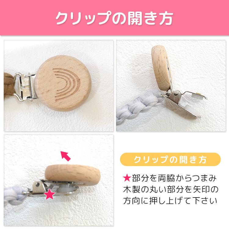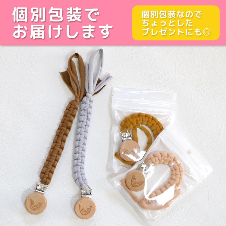 ニュアンスカラー おしゃぶりホルダー 歯固めホルダー おしゃれ くすみカラー クリップ付き ベビー 赤ちゃん 布編み 木製クリップ