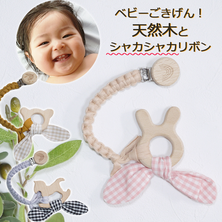 歯固め はがため 木製 ギンガムチェック シャカシャカ リボン りぼん 贈り物 出産祝い ハーフバースデー 男の子 女の子おしゃれ 可愛い