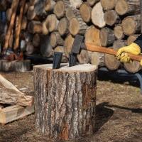 原木に食われた斧を左右に揺すって抜くと、柄が割れたり緩む原因になります。