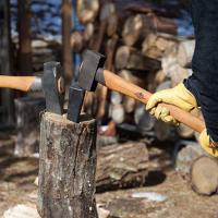 斧を抜く際は左右にゆすると斧頭が緩んだり柄が破損するおそれがありますので、ねじりクサビを打ちこんだ状態で垂直に引き抜くようにしてください。