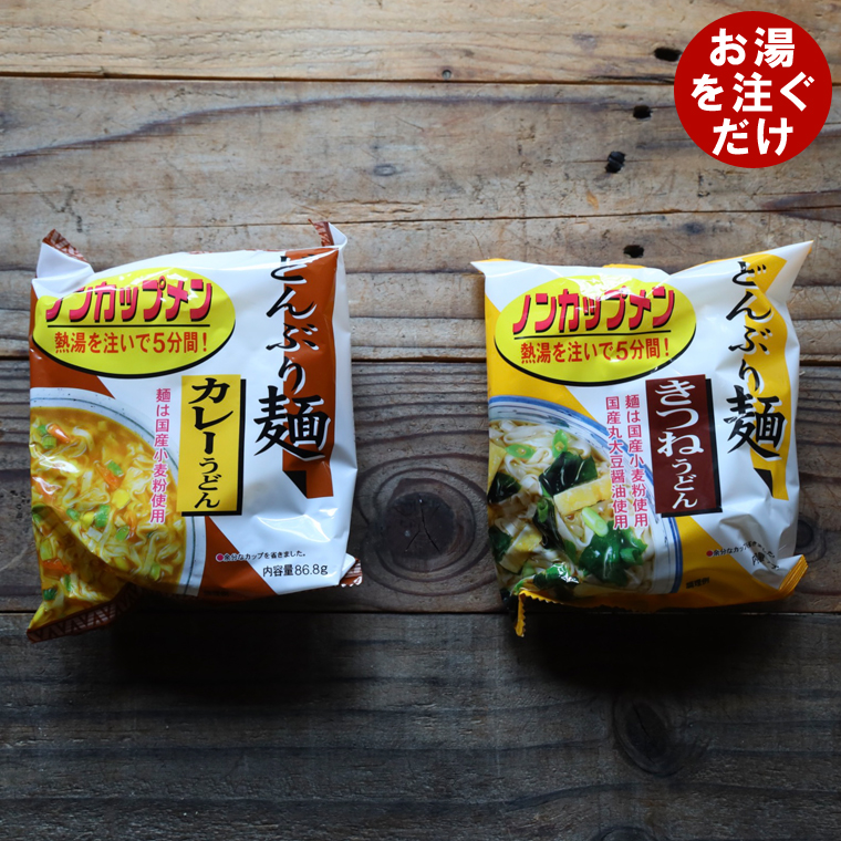 お湯を注ぐだけですぐ食べられるムソーのノンカップ麺です。生産者の顔が見える原材料を用いた安心のおいしさ◎「カレーうどん」と「きつねうどん」の2種類をご用意しました。