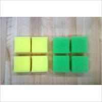 黄色のスポンジが上になるように栽培鉢に入れて、トマトやキュウリなど実のなる野菜の栽培に使用します。緑と黄色各4個のセットです。