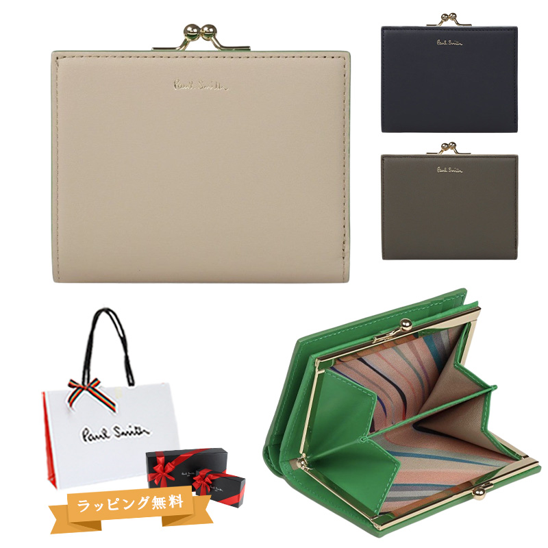 外装と内装のカラーコントラストが際立つ、シンプルかつ洗練されたがま口タイプの2つ折り財布。