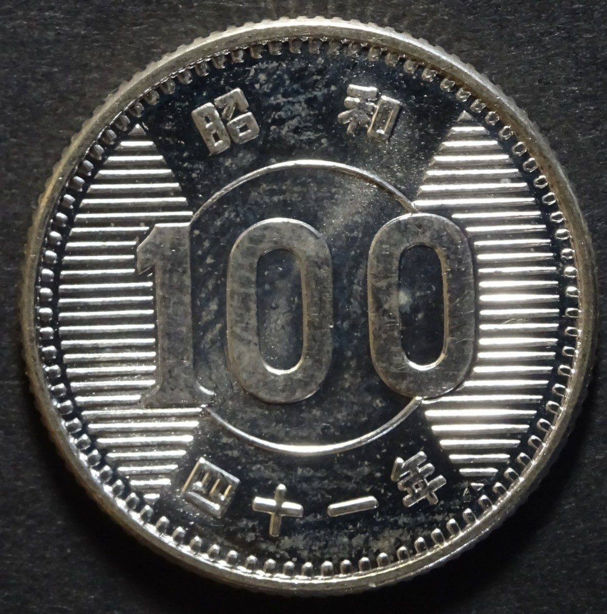 昭和41年稲穂100円銀貨、ロール出し完未