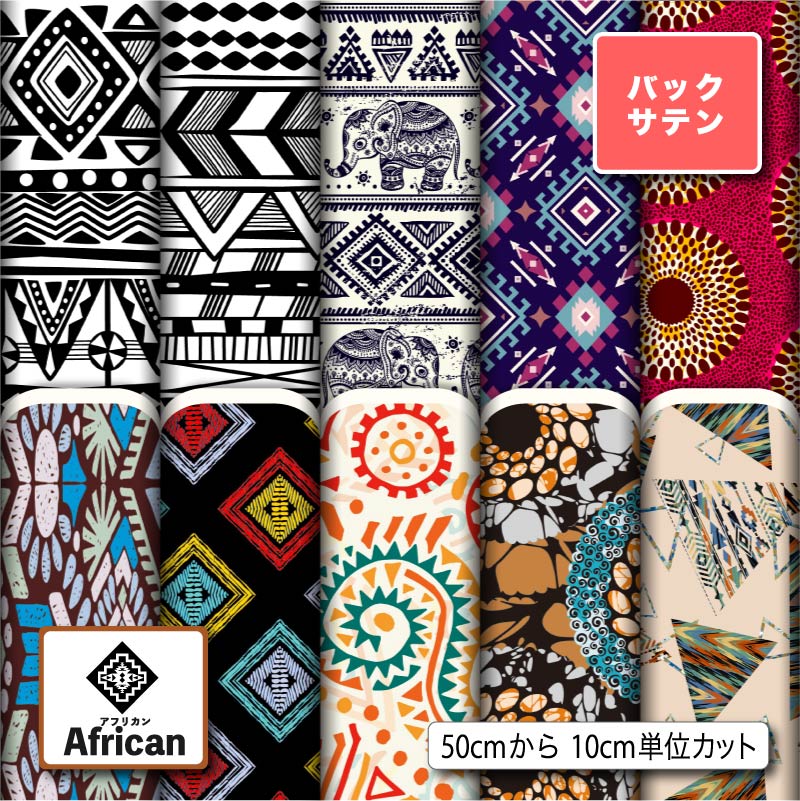 生地 布 バックサテン生地 アフリカン柄 プリント生地 10柄 10cm単位 光沢 高級感 商用利用可 50cmから ハンドメイド 手作り 手芸 ドレス パーティバッグ ネクタイ ハロウィン コスプレ 体育祭 文化祭 舞台 発表会衣装 ぬいぐるみ ドール 洋服に最適