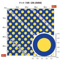 ドット105:鮮やかな紺色と黄色で表現されたレトロポップなドット柄の総柄プリント生地。