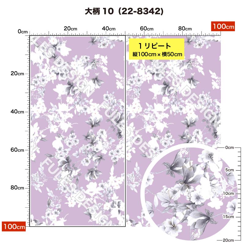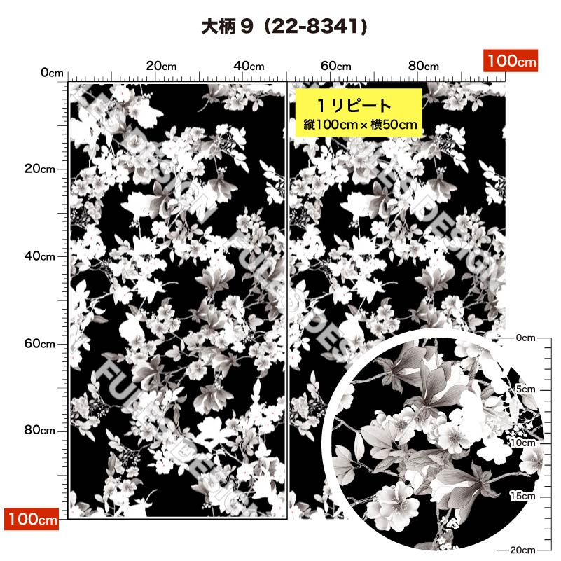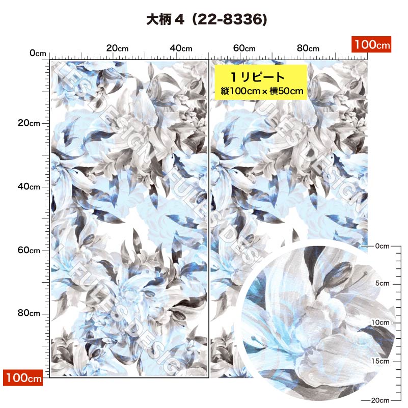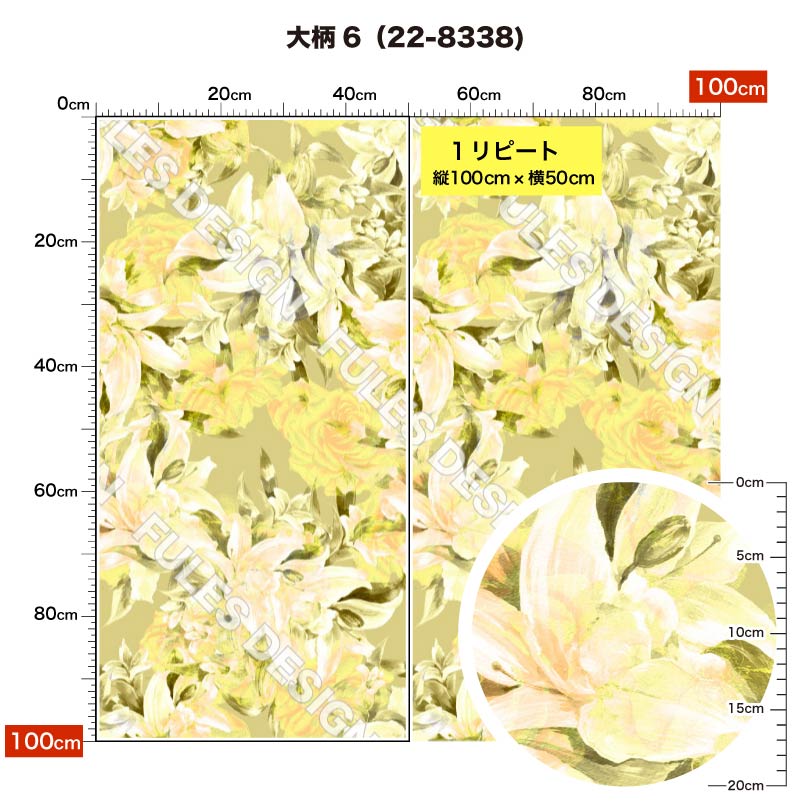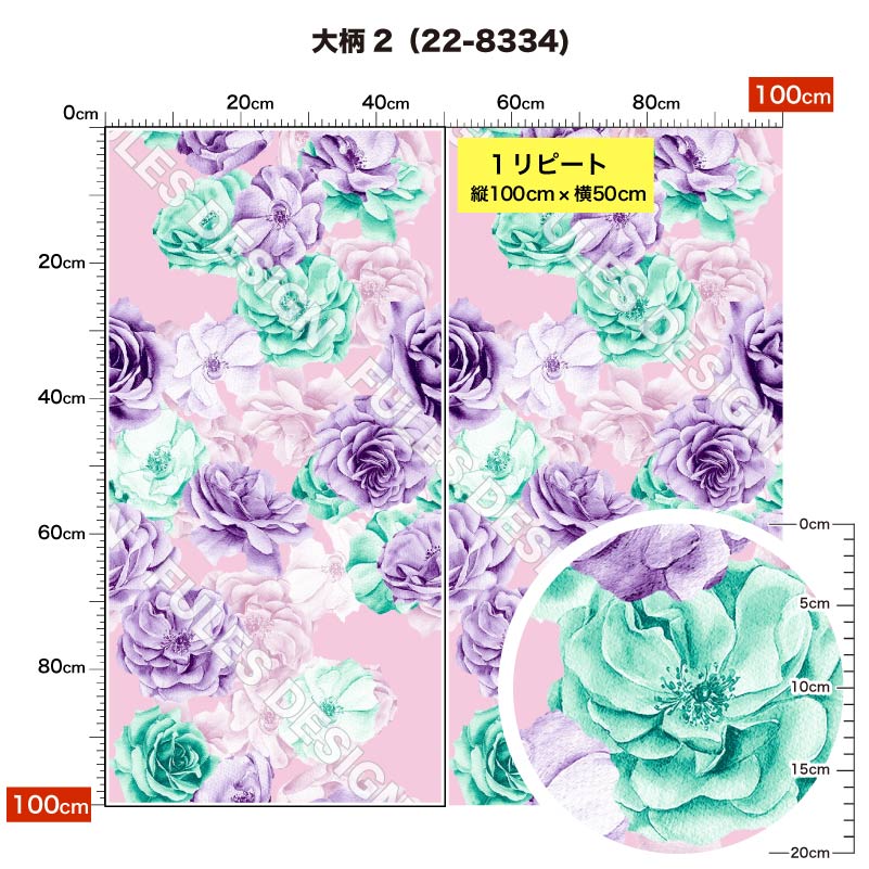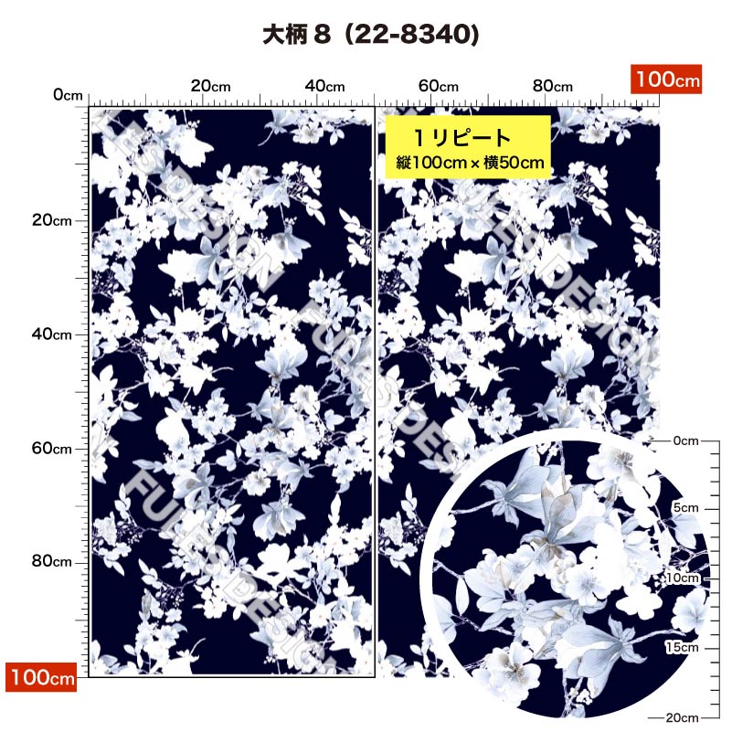 当ページでは【総柄プリント生地 ポリエステルサテン生地】に【大柄】が選べます。