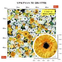 リアルプリント72:ひまわり、マーガレット、ローズなどの花をふんだんに使用した、鮮やかな白、黄色が映える総柄プリント。