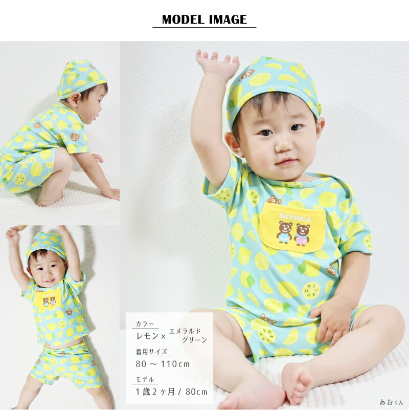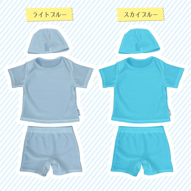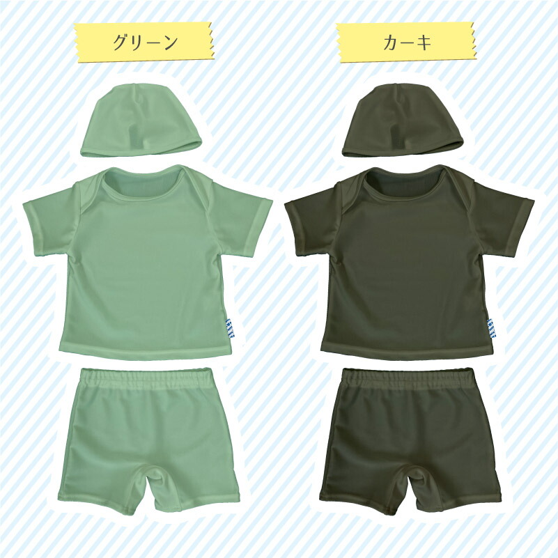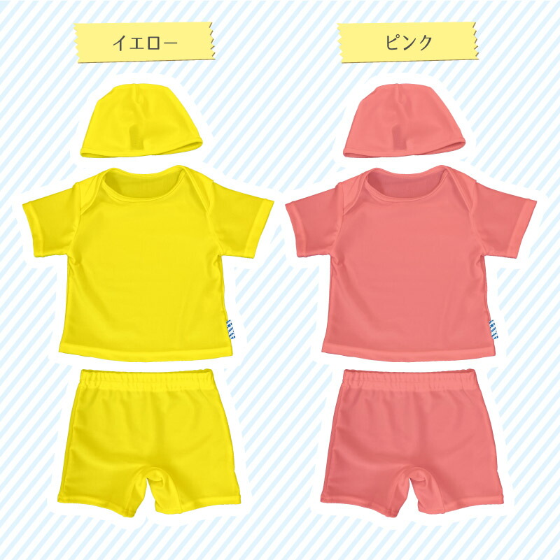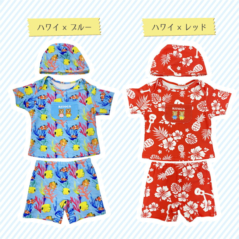 赤ちゃん 子供 こども ミズギ ベビー水着 男の子 女の子 男女兼用 ユニセックス 80/90/100/110cmサイズ適応 日本製 国産 ベビースイミング ベビースイム プール 海 河川 レジャー 水遊び UVカット 日焼け紫外線対策 体が冷えない 吸汗速乾 肌触りの良い 伸びのよいストレッチ素材 簡単お着替え 半袖ラッシュガード セパレート 水泳帽子付き スイムキャップつき セット水着 みずぎ 水着 誕生日 出産祝い ギフト プレゼント 贈り物