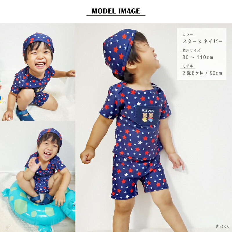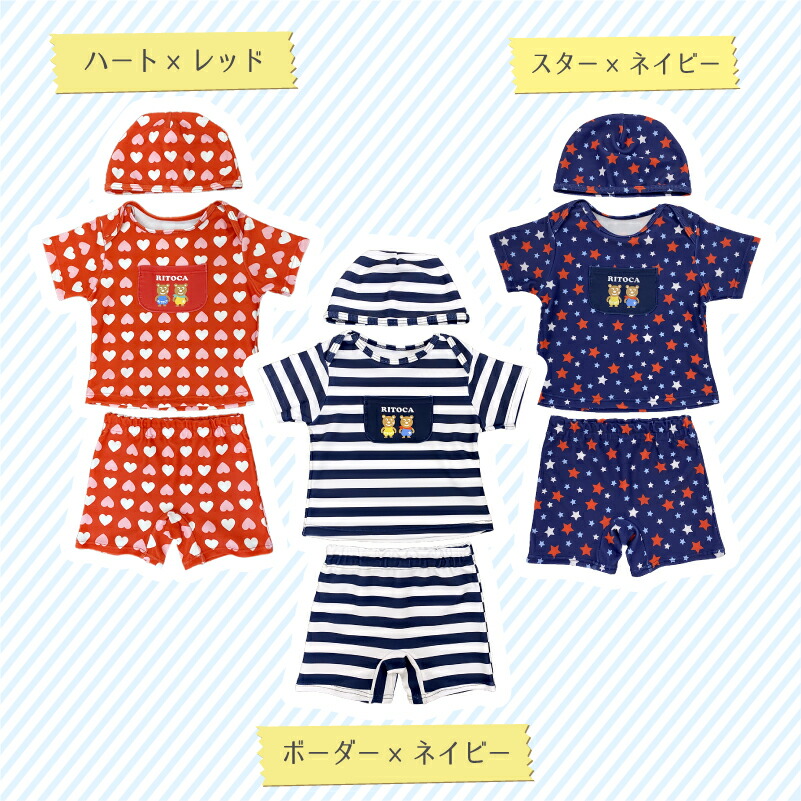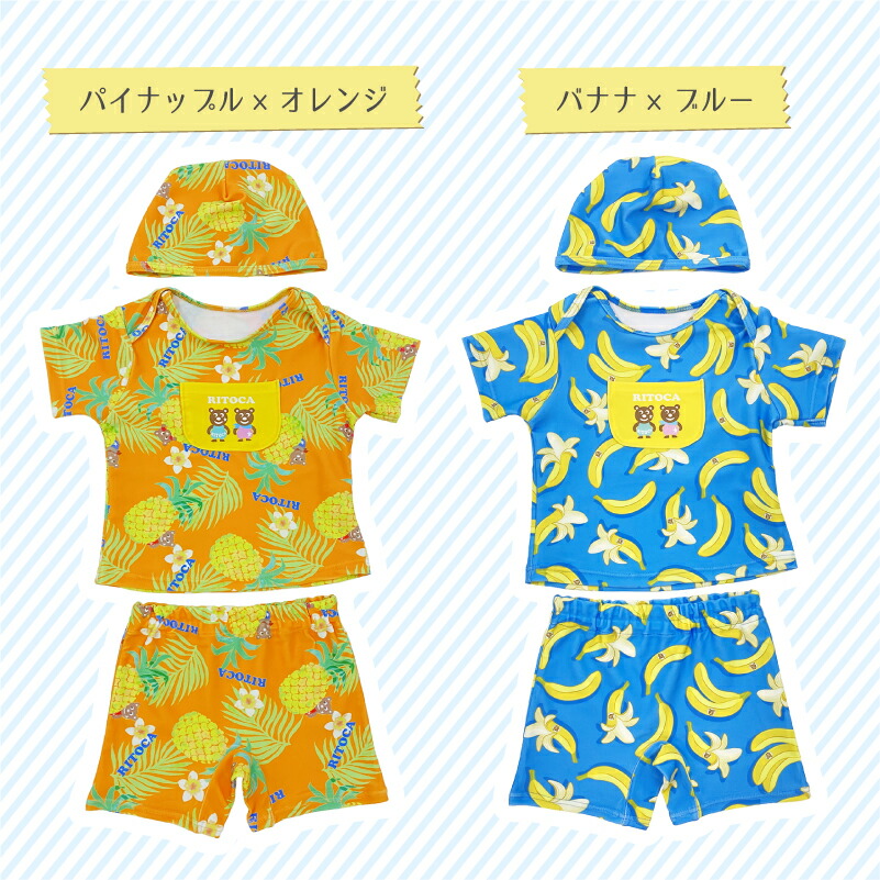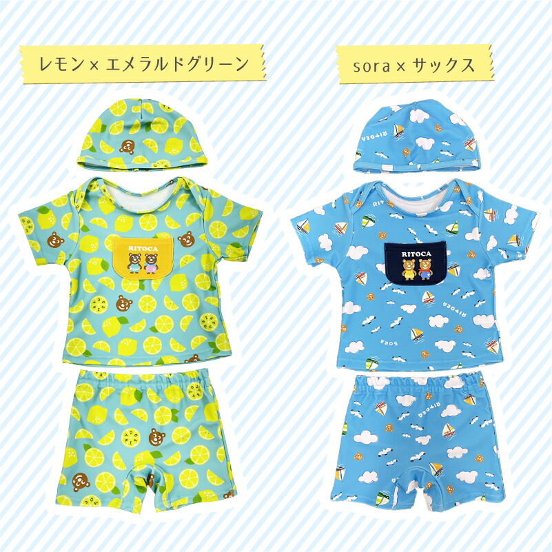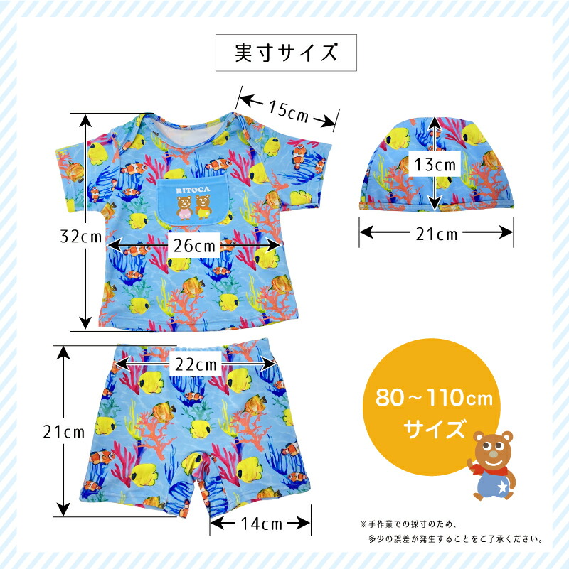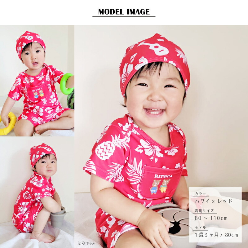 赤ちゃん 子供 こども ミズギ ベビー水着 男の子 女の子 男女兼用 ユニセックス 80/90/100/110cmサイズ適応 日本製 国産 ベビースイミング ベビースイム プール 海 河川 レジャー 水遊び UVカット 日焼け紫外線対策 体が冷えない 吸汗速乾 肌触りの良い 伸びのよいストレッチ素材 簡単お着替え 半袖ラッシュガード セパレート 水泳帽子付き スイムキャップつき セット水着 みずぎ 水着 誕生日 出産祝い ギフト プレゼント 贈り物