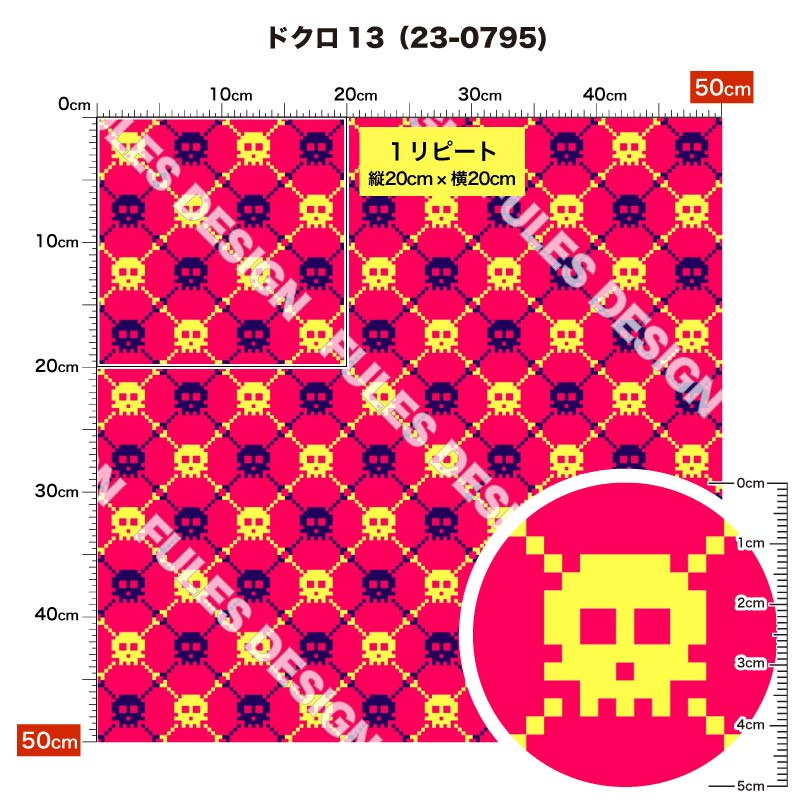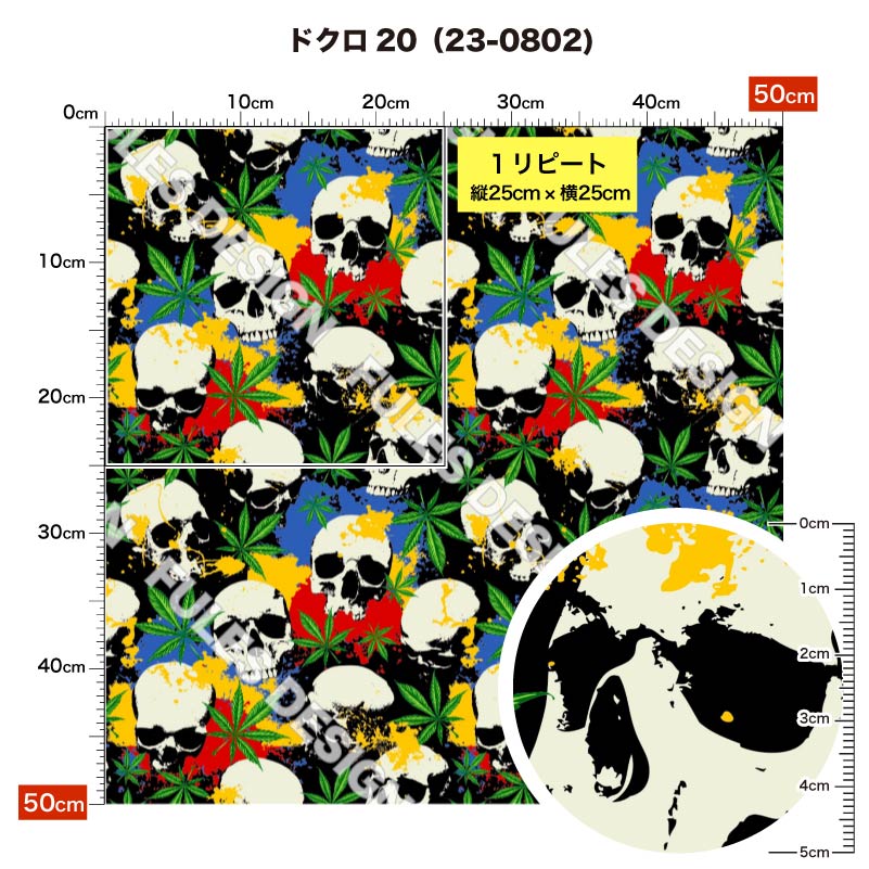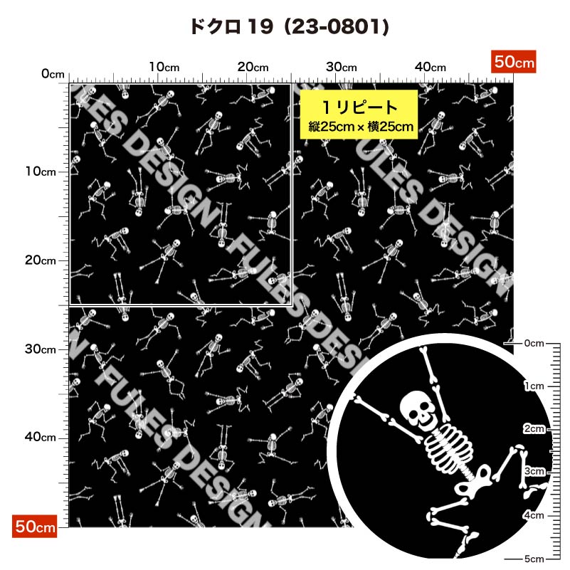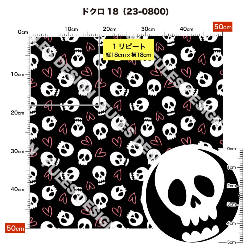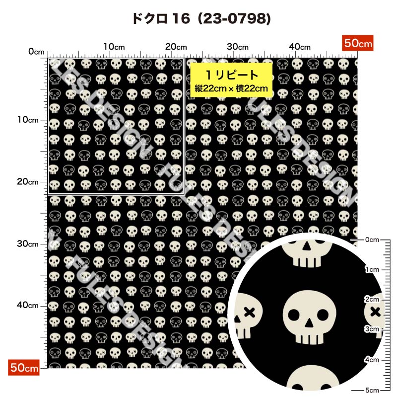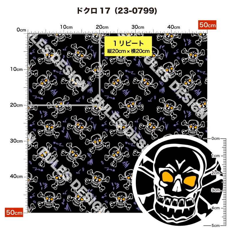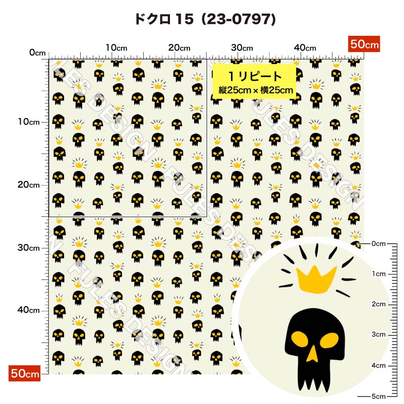 当ページでは【総柄プリント生地 ポリエステルサテン生地】に【ドクロ スカル柄】が選べます。