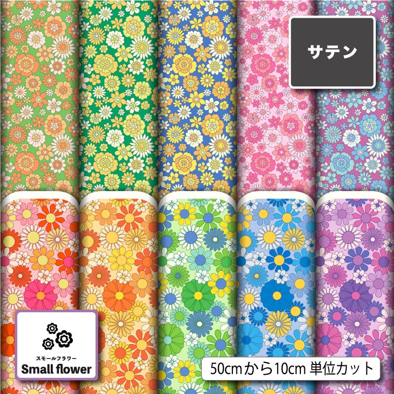 小花柄 レトロ カラフル 小さい 花 レトロポップ 北欧 ピンク かわいい ナチュラル フローラルプリント パステルカラー キュート ポリエステルサテン 繻子織り 朱子織り オーダー 鮮やか 発色のよい 綺麗な ハッキリした マルチカラー プリント 印刷 生地 布 布地 総柄 生地幅 広幅 ダブル幅 ダブル巾 W幅 W巾 生地 約150cm幅 日本製 50センチから10センチ単位 生地1m購入可能 柄の種類が豊富 たくさんの柄 なかなかない柄 アートでおしゃれな柄 あまり見ない柄 珍しい柄 生地通販 ネット 販売 工場 手作り ハンドメイド オリジナル 手芸 洋裁 洋服作り ソーイング 商用可能 業務用にも