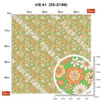 小花41:黄緑の地色にやさしいオレンジ色が映える、レトロポップな雰囲気の小花柄総柄プリント生地。