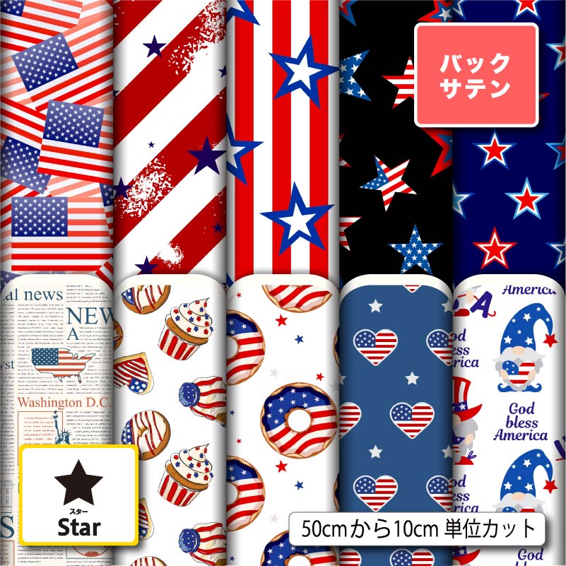 生地 布 バックサテン生地 スター 星柄 プリント生地 10柄 光沢 高級感 商用利用可 50cmから ハンドメイド 手作り 手芸 ドレス パーティバッグ ネクタイ ハロウィン コスプレ 体育祭 文化祭 舞台 発表会の衣装 ぬいぐるみ ドール 洋服