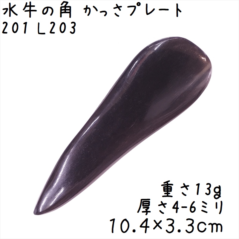 かっさプレート 水牛の角 自然形 L203 黒水牛角 一点物 現品お届け