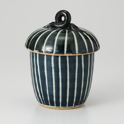 ☆ むし碗 ☆ 青釉たて筋 蓋物 [ 7.9 x 12cm 570g ] 【 料亭 旅館 和食器 飲食店 業務用 】