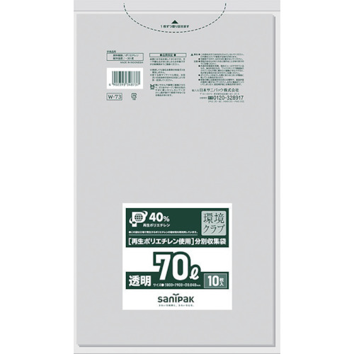サニパック W−73環境クラブ70L透明 W-73-CL 10枚 40冊まとめ売り 【まとめ売り商品】