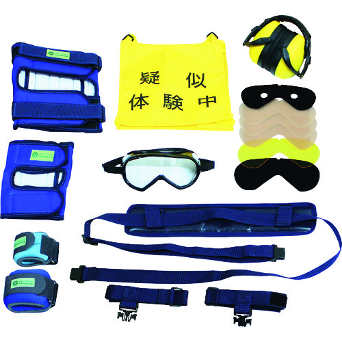 セット内容/付属品 | ●サンワイヤーマフ SN-1333×1個、視覚障害ゴーグル×1個、ひじサポーター×1個、ひざサポーター×1個、重りバンド手首用500g×1個、重りバンド足首用1kg×1個、ディスポ手袋セット×1セット、ゼッケン×1枚、前かがみ姿勢体験ベルト2×1個、ケースM×1個 |